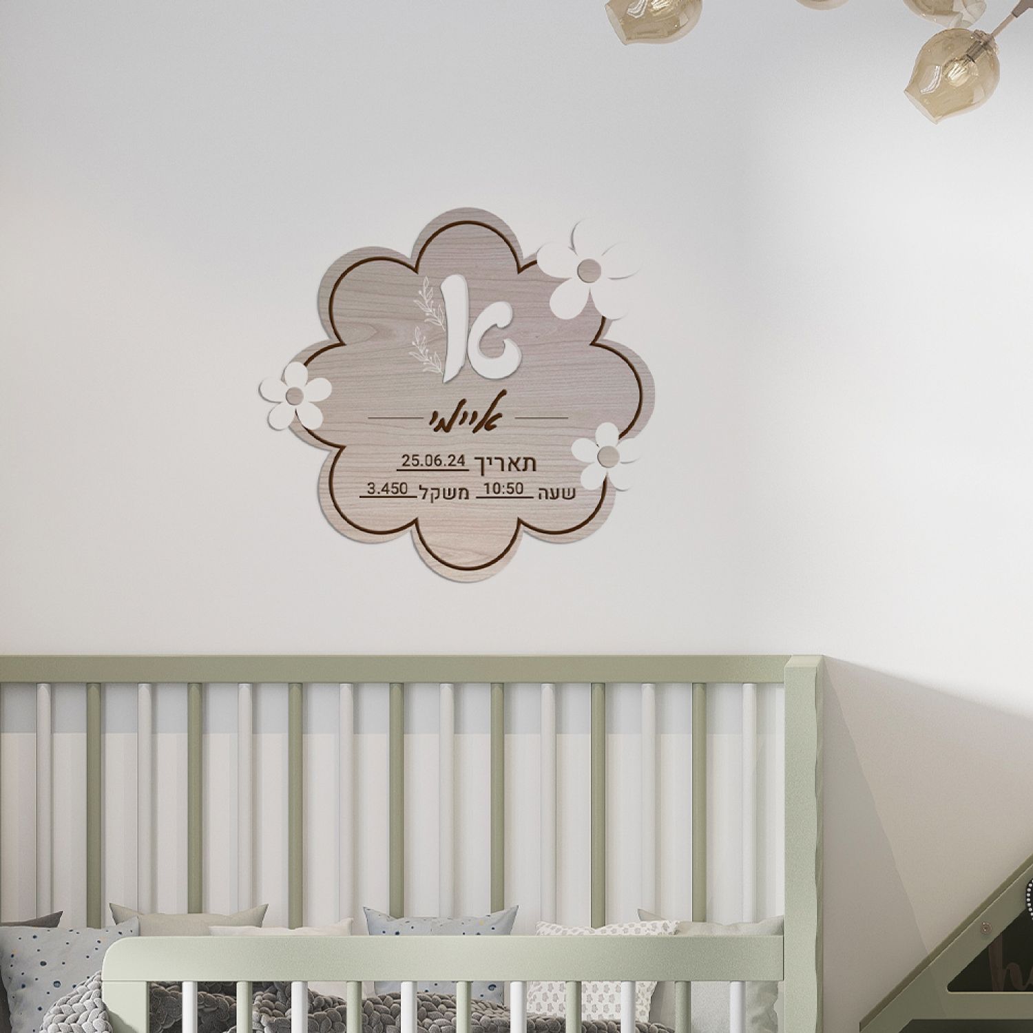 תעודת לידה מעוצבת - צורת פרח - עברית
